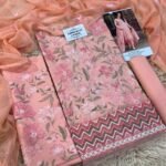 The back comes in dyed lawn fabric, offering a neat and balanced look, while the outfit is completed with a dyed lawn trouser for all-day comfort. The suit is paired with a stylish digital printed dupatta, available in premium fabrics such as Bana Dora, Diamond, Voil Dobby, or Organza.